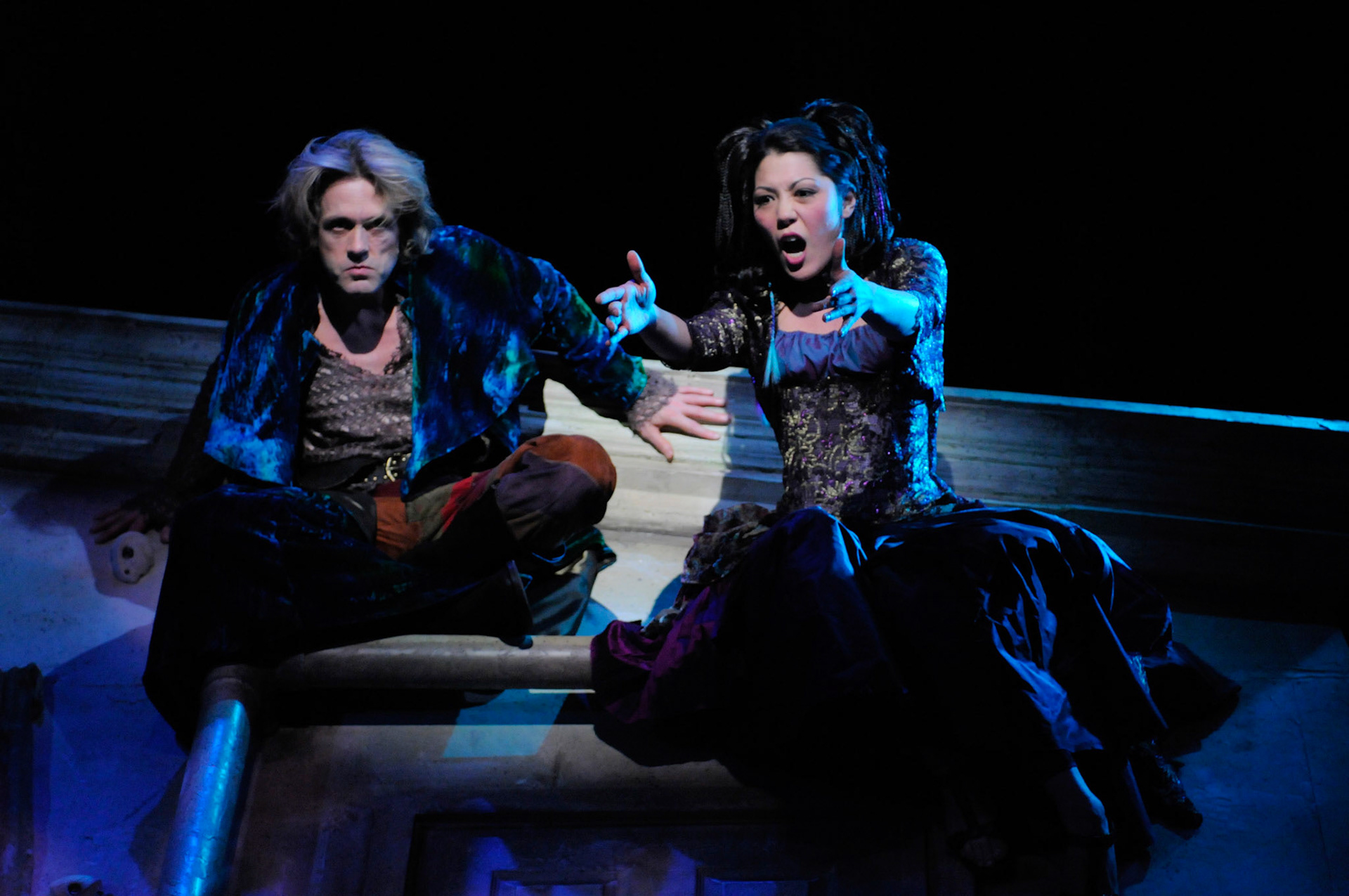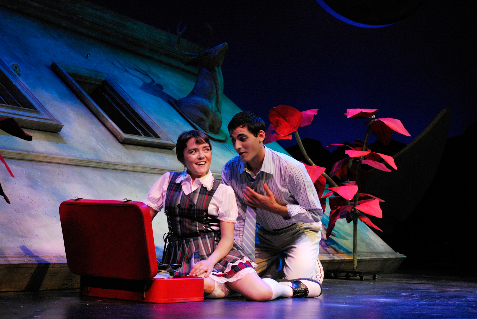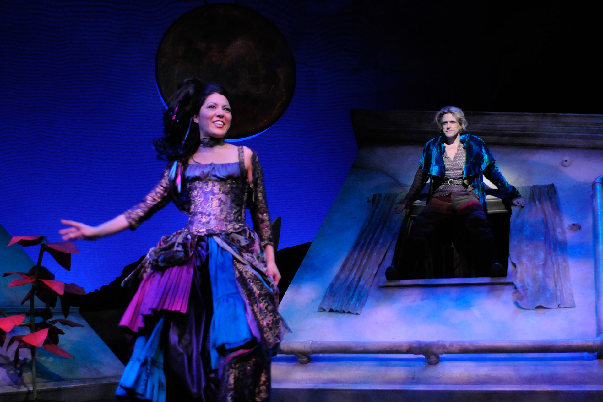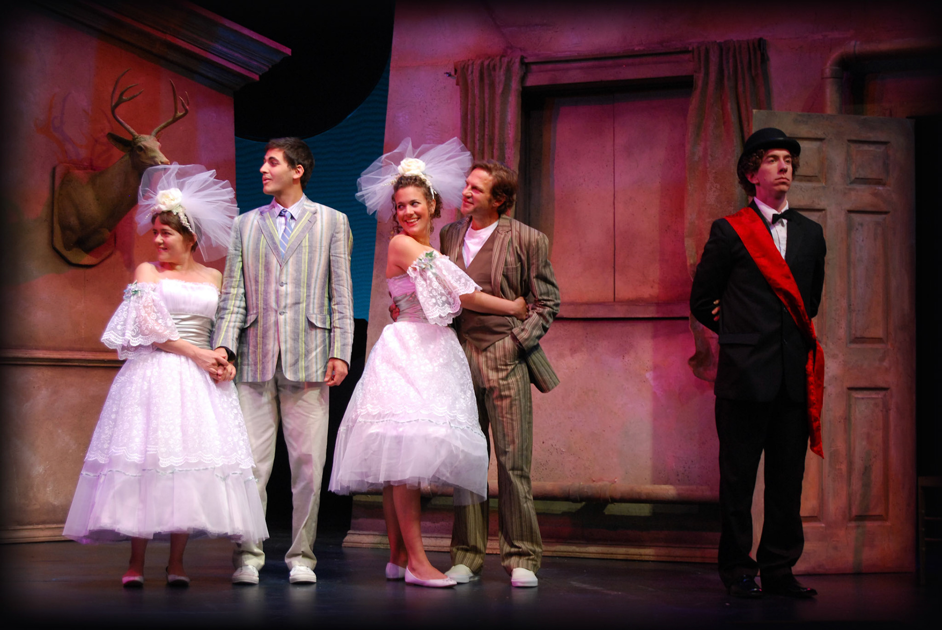 The walls of the A Midsummer Night's Dream set featured a pneumatic piston system that enabled the walls to be lowered from 90 degrees to a slanted angle. The rigid upright walls were for the everyday world of Athens, while the slanted walls represented the wild, overgrown night time chaos of the Forest. Director Michael Butler wished to stage the classic play in a non-traditional way. Butler says, « Midsummer has two distinct worlds: that of the Court with all its rules and constraints, and the forest, which is anarchic, mischievous, erotic. I thought of the play as a gleeful and unruly rebellion of the imagination against all those forces that tell us what we're supposed to do. I wanted also to play with strange intersections of dream world with real world, like vines invading our hair while we sleep. So rather than keep the two worlds separate, Kim and I wanted the world of the Court to be taken over and transformed by the forest, much the way it might happen in a dream where the familiar can suddenly alter in strange ways. »